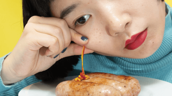 Miyazaki memparodikan, dengan kemahiran seni dan fotografinya, memencet jerawat yang kerap dilakukan kebanyakan orang. Di tangan perempuan 25 tahun ini jerawat menjelma kaviar, sedangkan cairannya berhasil diubah jadi mustard.